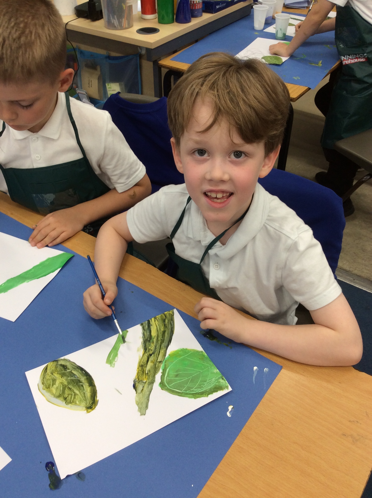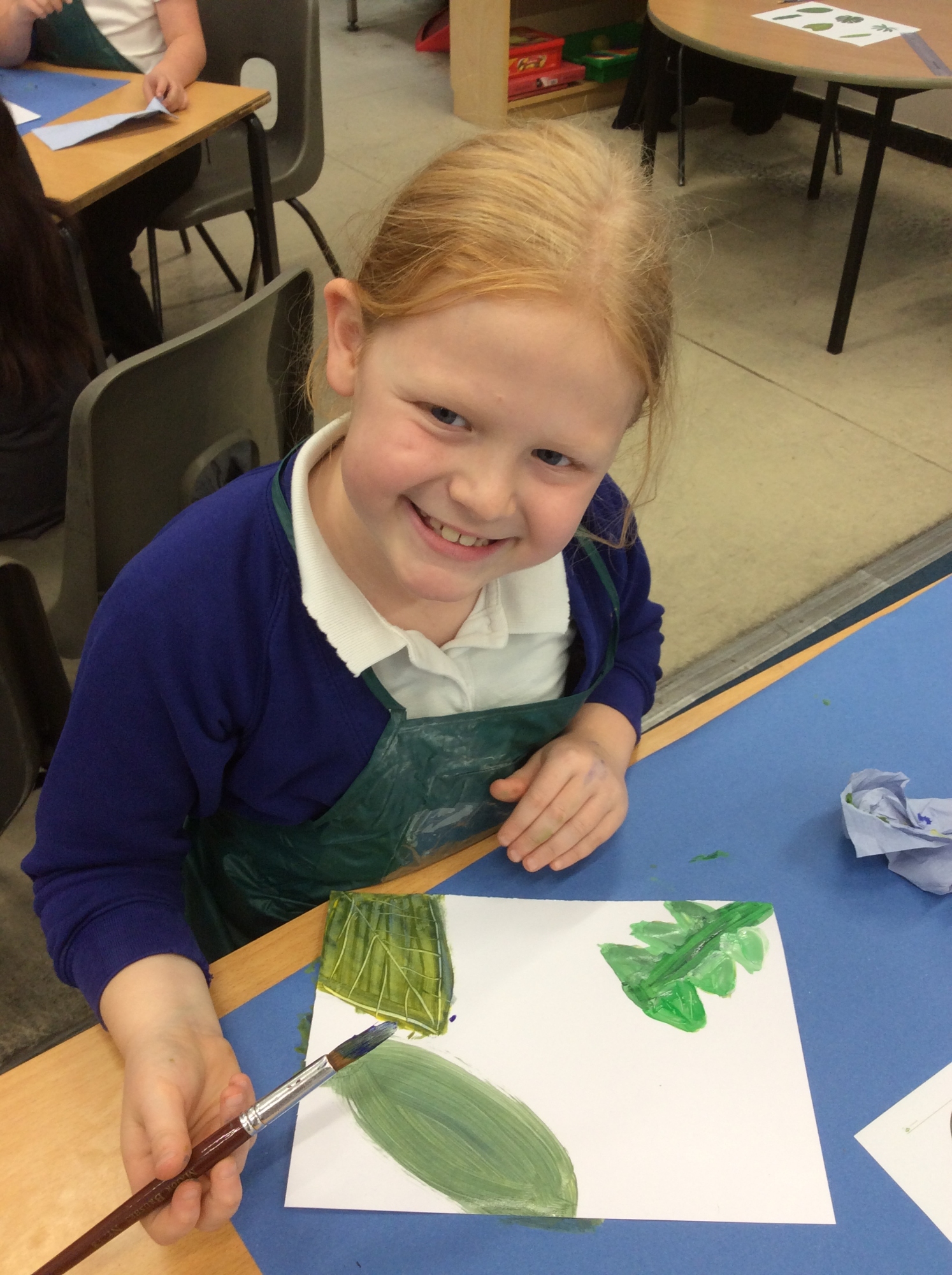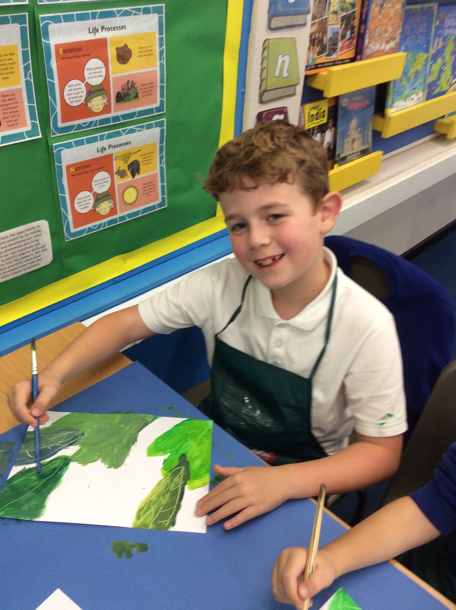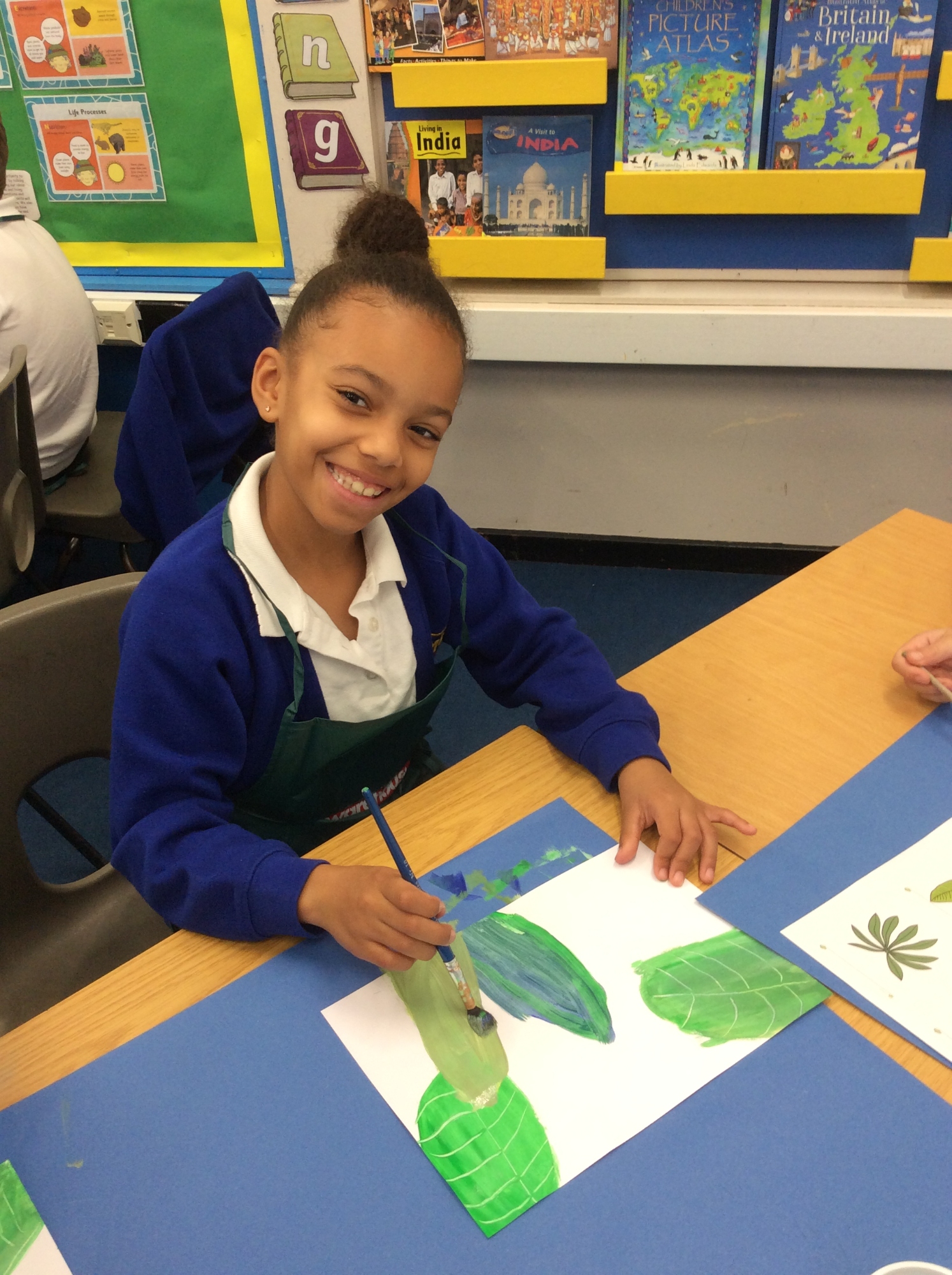 This week in Art, we have started to create our final pieces in the style of Henri Rousseau. We used 5 different colours of paints to create our jungle backgrounds, mixing them together to create different shades of green. We also learned the ‘sgraffito’ technique in order to add detail to our work. This is a technique which involves turning the paintbrush around and scratching through a top layer of wet paint in order to reveal a contrasting colour underneath.